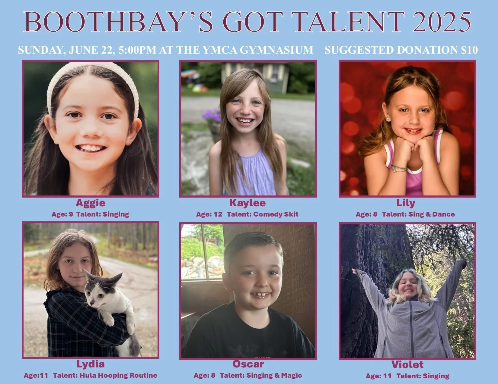 Boothbay’s Got Talent is back this year and will be LIVE at the YMCA! This year’s competition includes two categories: The Royal Windjammer (Ages 7-12) and Top Royal (ages 13-18). There is not a gender assigned to either title.